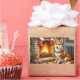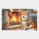 This charming holiday scene features a sweet Basenji sitting beside a warm fireplace, wrapped in glowing Christmas lights with stockings hanging overhead. The breed’s alert expression and graceful posture bring extra charm to this cozy seasonal setting. Perfect for Basenji lovers, holiday décor enthusiasts, and anyone looking for heartwarming Christmas artwork on Zazzle that highlights the unique personality of this beloved breed.