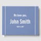 This respectable funeral/memorial sympathy guestbook features the message "We love you,", and the customised name and birth/death dates of the individual who has passed away. It could be used to record sympathetic wishes for the relatives and friends of somebody who has recently passed away.