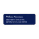 A simple blue address_label with your name (handwritten font style) and additional information.