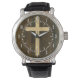 Basic Christian Cross Wooden Veneer Maple Rosewood Watch