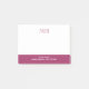 Personalised post-it notepads in white with fuchsia details. Your name, initials, and contact information.