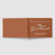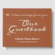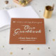 This conservative guestbook features the messages "Our Guestbook" and "We’d love a message from you!", along with a personalised date and event/occasion name. The text is coloured light cyan, and the background is coloured sienna. A generic, customisable guestbook like this could perhaps be used at an event such as a family reunion, a birthday party, a baby shower, or some other event.