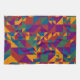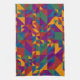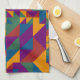 Abstract geometric pattern consisting of basic triangular and square shapes in dark colours and varied sizes.