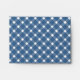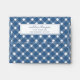 This Address envelope has a blue and white gingham background with a white rectangular outlined by a thin border. The text inside is styled with a mix of script and simple fonts, creating a clean, classic, and elegant look.