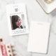 Classic black and white identification badge with photo and logo on the front, and return address if lost on the back of the badge. This professional item also includes business location, job title, and employee id number.