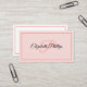 This professional business card front design features a misty rose background with pink frame with initial letter monogram. The back holds the business name and information including full name and occupation over a white background with the same pink frame. Personalise the text fields, remove any text or click customise to select a typeface style, size, and colour you like.