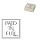 This rubber stamp design features the message "PAID IN FULL". It could perhaps be used to indicate that a bill or invoice has been paid in full.