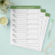 A great design to organise your passwords. This design includes an area to add your name at the top. Other areas included basic password information for username and password. You can change the colour bar on the top.