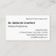 This minimal and plain business card design features a first and last name, a business or clinic name, a profession title, and contact details that are customisable. Business cards such as these might be used by a professional such as a primary care physician, a doctor, or a family physician.