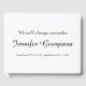 This mournful funeral or memorial guest book features the message "We will always remember", along with a personalised name, and birth/death dates. It could be used to record sympathetic wishes for the relatives and friends of somebody who has recently passed on.