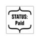 This simple rubber stamp design features the message "STATUS: Paid". It could perhaps be used to indicate that a bill or invoice has been paid in full.