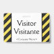 This basic badge design features the messages "Visitor" and "Visitante", and a customisable company name or other custom message. A badge like this could be used to identify that somebody at a workplace or business is an authorised guest/visitor. [~Z0000307]