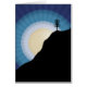 Enjoy this colourful graphic design featuring the silhouette of a disc golf basket on a mountain.