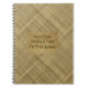The cover of this notebook looks as if it has been woven from wicker, with the contrasting strands creating a plaid-like, diamond-shaped effect. In the centre is a small rectangular label resembling crumpled brown paper, which can serve as the background for your name, a title, or any other text you wish to display - easily edited with the customisation tool, or delete altogether, as preferred.