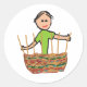 Weaving a wicker basket in basketry depicted by this drawing of a willow weaver with a part completed willow wicker basket in front of them. For basket weaving fans!