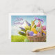 Basket with Easter Eggs on Green Grass Holiday Postcard