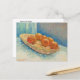 A fine art postcard featuring, Basket with Six Oranges (1888), a post-impressionist work by the Dutch artist Vincent van Gogh (1853-1890). This still life depicts a wicker basket overflowing with fruit, placed upon a table.