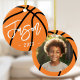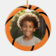 Ceramic ornament featuring a basketball with your custom name in a cool font with the year below. On the back is a photo frame with your custom photo.