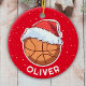 Basketball Ball Red Santa Hat Christmas Kid Name Ceramic Tree Decoration