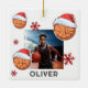 Basketball Ball Santa Hat Name Photo Christmas Ceramic Ornament