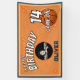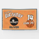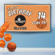 Basketball Ball Sports Birthday Photo Backdrop Banner. A modern personalised sports birthday celebration banner with a basketball ball, name, age and photo. The background is orange with stars. You can change any text on the banner.