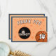 Basketball Ball Sports Birthday Photo Thank You Card. A modern personalised sports birthday celebration thank you card with a basketball ball, name, age and photo. The background is orange with stars. On the backside is a custom thank you note with name.