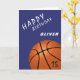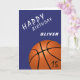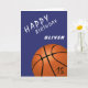 Basketball Ball Sports Pattern Modern Happy Birthday Card. Modern basketball birthday card for anyone who loves basketball. Basketball ball on the dark purple colour. Personalise with your name and age on the ball.