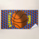 Basketballs make up this fun beach towel. Customisable so you can add your own text and change the background colour. Soak up the sun with this cool design!