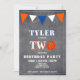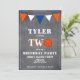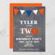 Cute Chalkboard Basketball Birthday Invitation for boys 2nd Birthday // Cute basketball birthday party card for the 2nd birthday. The design has a large basketball and bunting flags in orange and white colours on the chalkboard background. The back side has a stripe pattern on an orange background. Personalise this birthday invite with a child`s name and a photo and personalise all the data on the invitation. Great as a 2nd birthday party invitation for boys.