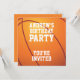 Perfect party invitations for a basketball fan or basketball player. The front of the invitation features a close up of a basketball. The back of the invitation features all the information for the upcoming celebration with white text on an orange background. The colour of the text and background can be changed to suit your own needs and style. All text is fully customisable for your own party.