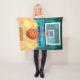 Basketball Design Fleece Blanket featuring the silhouette of a player jumping towards the hoop against a basketball background, with customisable personalisation.