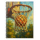 Transform your note-taking with this striking basketball hoop notebook featuring rich impressionist brushwork and vibrant colors. The iconic moment of the ball swooshing through the net comes alive with textured oil painting style in warm oranges, golds, and cool blues on every cover.