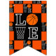 Basketball Hoops, Basketball Player Birthday. Basketball Black And Orange Sports Birthday Party Bunting Flags. Basketball balls with a Happy birthday wish on a black background.
