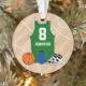 Personalised basketball jersey in green and white with, jersey, water bottle, basketball sneakers and basketball with a basketball court background. We can design this in any colour you require, just contact us via the giftsbonanza store prior to purchase to discuss