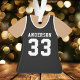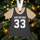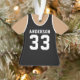 Basketball Jersey Sports Team Uniform Ornament. This basketball jersey ornament is perfect for anyone who plays school sports or loves watching sports. Personalise this custom design with your own team name and jersey number.