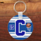 Basketball Letter and Number - Dark Blue and White Key Ring