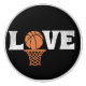 Retro style grunge "Love" text design with orange basketball and basketball net decoration