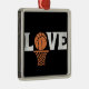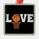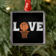 Retro style grunge "Love" text design with orange basketball and basketball net decoration