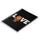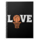 Retro style grunge "Love" text design with orange basketball and basketball net decoration