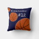 Basketball Sports Team Personalised Name and Number Navy Blue background Pillow.