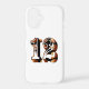 Featured in a orange and black design is a basketball number twelve logo made from inverted basketballs.