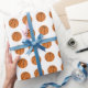 This basketball sports themed wrapping paper features a repeating pattern of orange and black basketballs. Click "Customise It" to select a background colour you like.