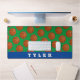 Basketball Pattern, Bold White Name, Blue/Green Desk Mat