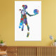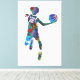 Watercolor-style artwork of a teenage basketball player in mid-air, holding a ball in an energetic pose. The vivid splashes of colour and dynamic composition emphasise motion and athleticism, making it a striking stretched canvas print for contemporary spaces or sports-themed interiors.