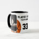 Basketball Player Name Number Team 2 Photos Coffee Mug. A perfect gift for the basketball player in your life - a personalised mug that showcases their love for the game! This mug features a photos of the player, giving them a constant reminder of the thrill of the game. The mug also includes the player's name, number, and team name, making it a truly personalised gift that they will cherish for years to come. This mug will bring a smile to their face and keep them motivated to keep playing their best.