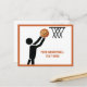 Basketball player with ball horizontal postcard that displays a minimalist icon of a black silhouette of a basketball player trying to put the orange ball in the basket and your text on white background with a border in the same colour of the ball. Personalise it and add the text “Best basketball player” or monogram, name or your message. The perfect gift for the basketball player or lover in your life. Some elements courtesy of vectorportal.com.