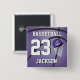 Basketball Purple and White | Personalise 15 Cm Square Badge