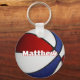 This basketball themed keyring for girls or boys features the realistic image of a basketball that has alternating red, white and blue panels - customise with the player's name - by katz_d_zynes