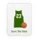 This Save The Date Flexible Magnet features the image of a basketball singlet shirt and a basketball. The text and shirt colour can be easily changed.