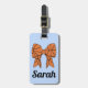 This customisable bag tag features a portrait of a ribbon bow modelled after a basketball.